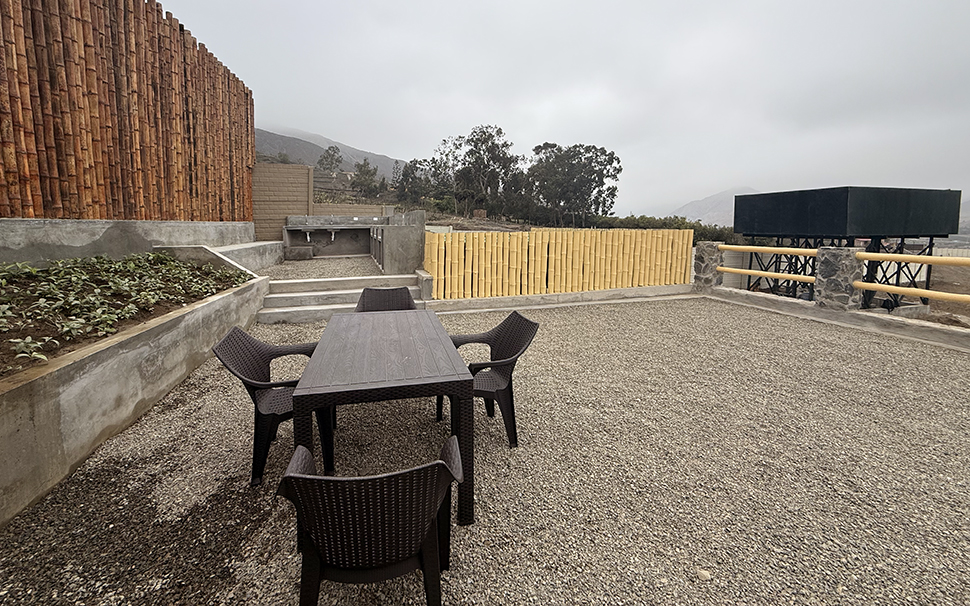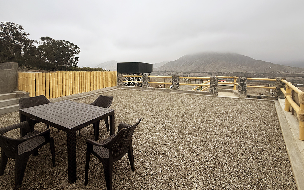 • Amplia terraza en alto, con Mirador hacia el Valle de Mala, con Mesas y Sillas, para socializar, ideal para disfrutar de agradables y reposados momentos