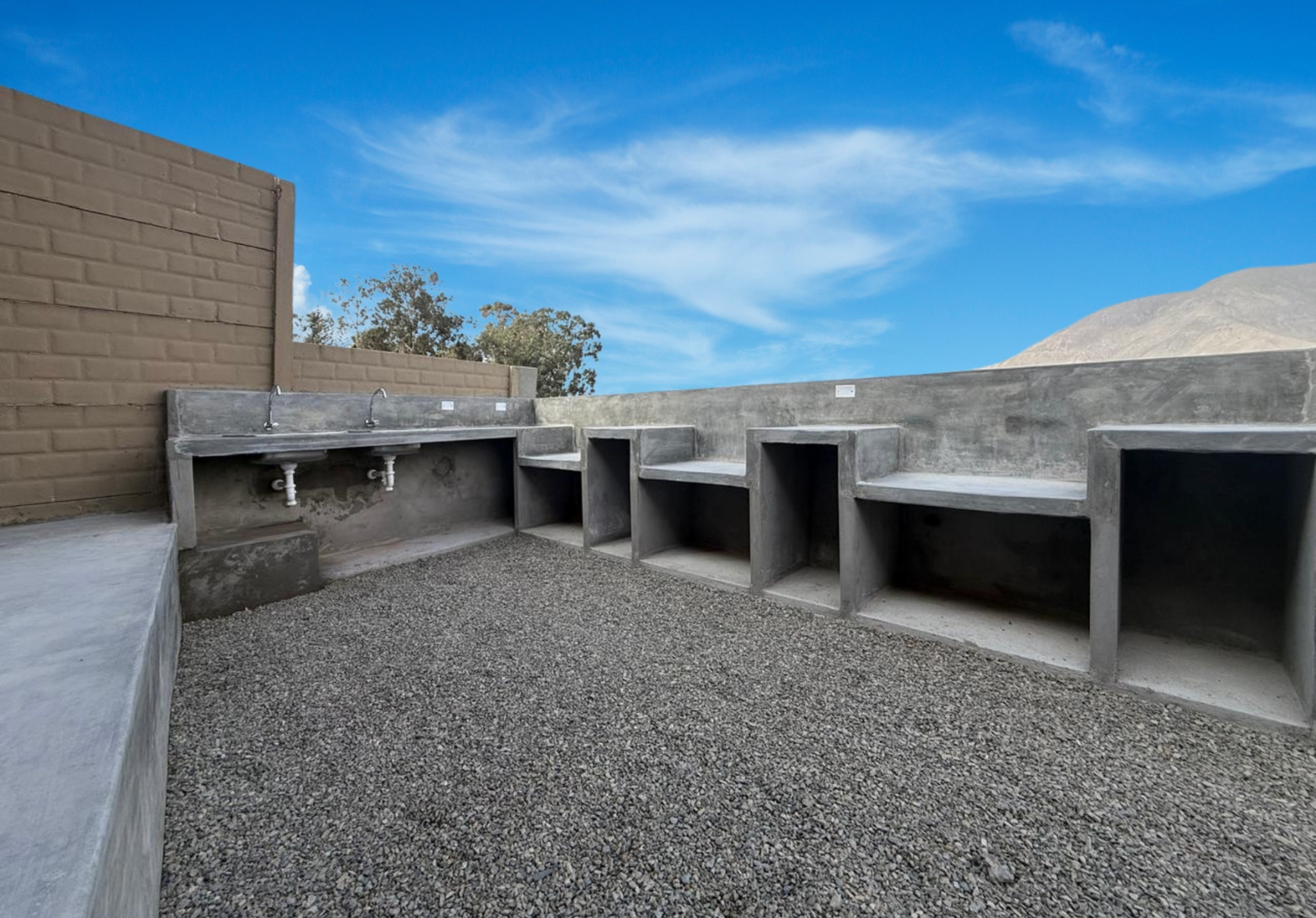 • Área de parrillas, equipada con 3 parrillas regulables y 2 lavaderos de acero