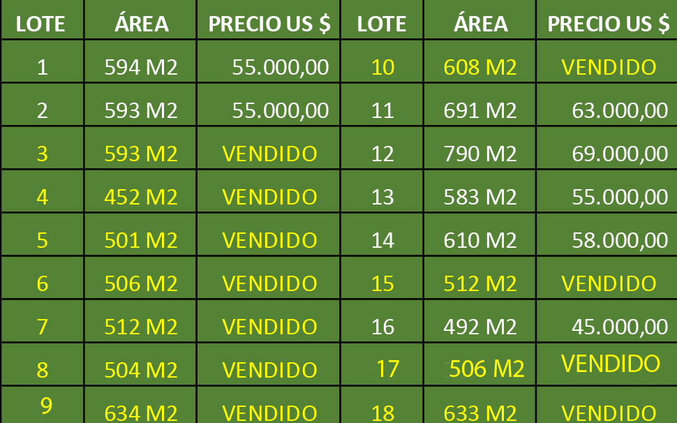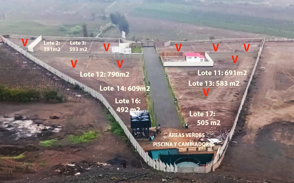 Más del 75 % de las obras están terminadas. 11 lotes ya vendidos. Quedan pocos lotes disponibles. Aproveche esta oportunidad antes de que los precios suban conforme se terminen las obras. Fácil acceso: